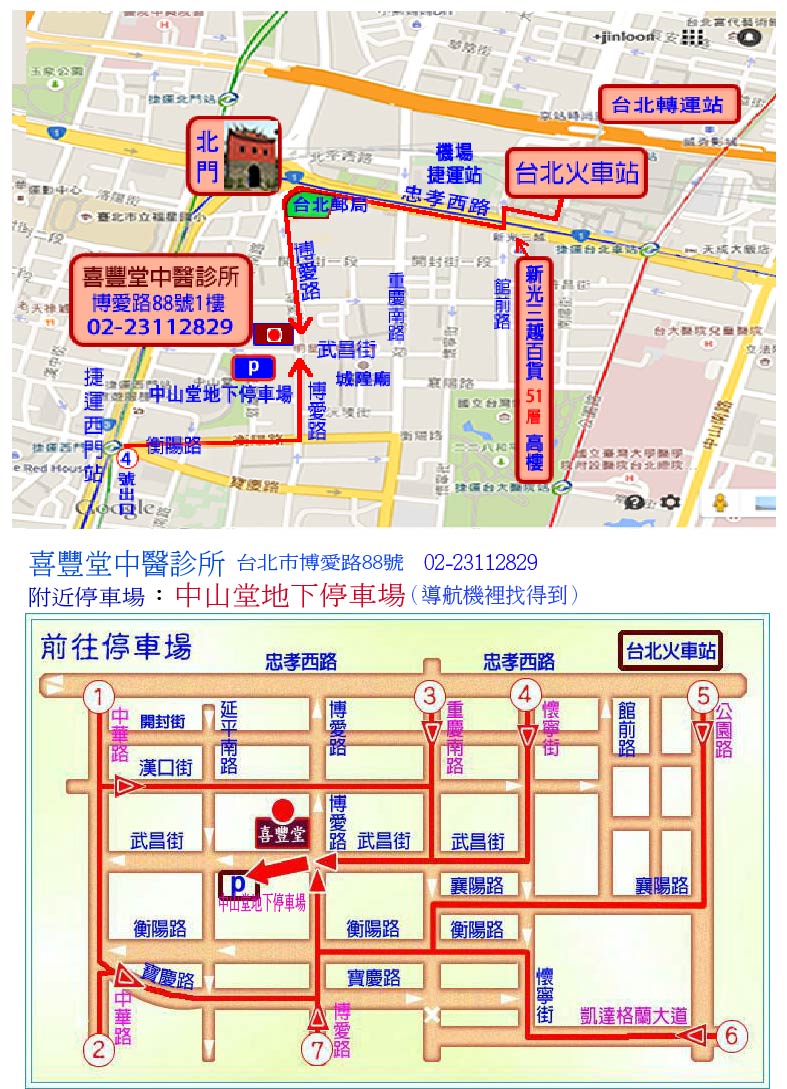 | 喜豐堂中醫診所地址 | 台北市中正區博愛路88號1樓 |
